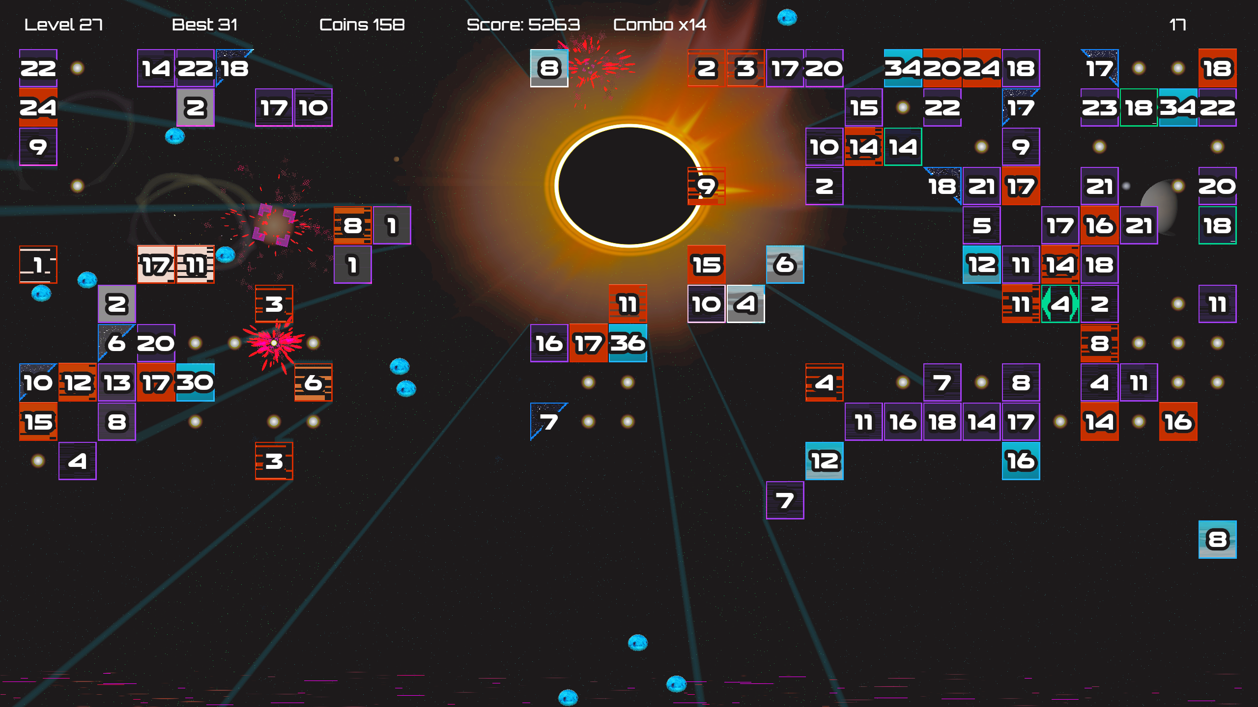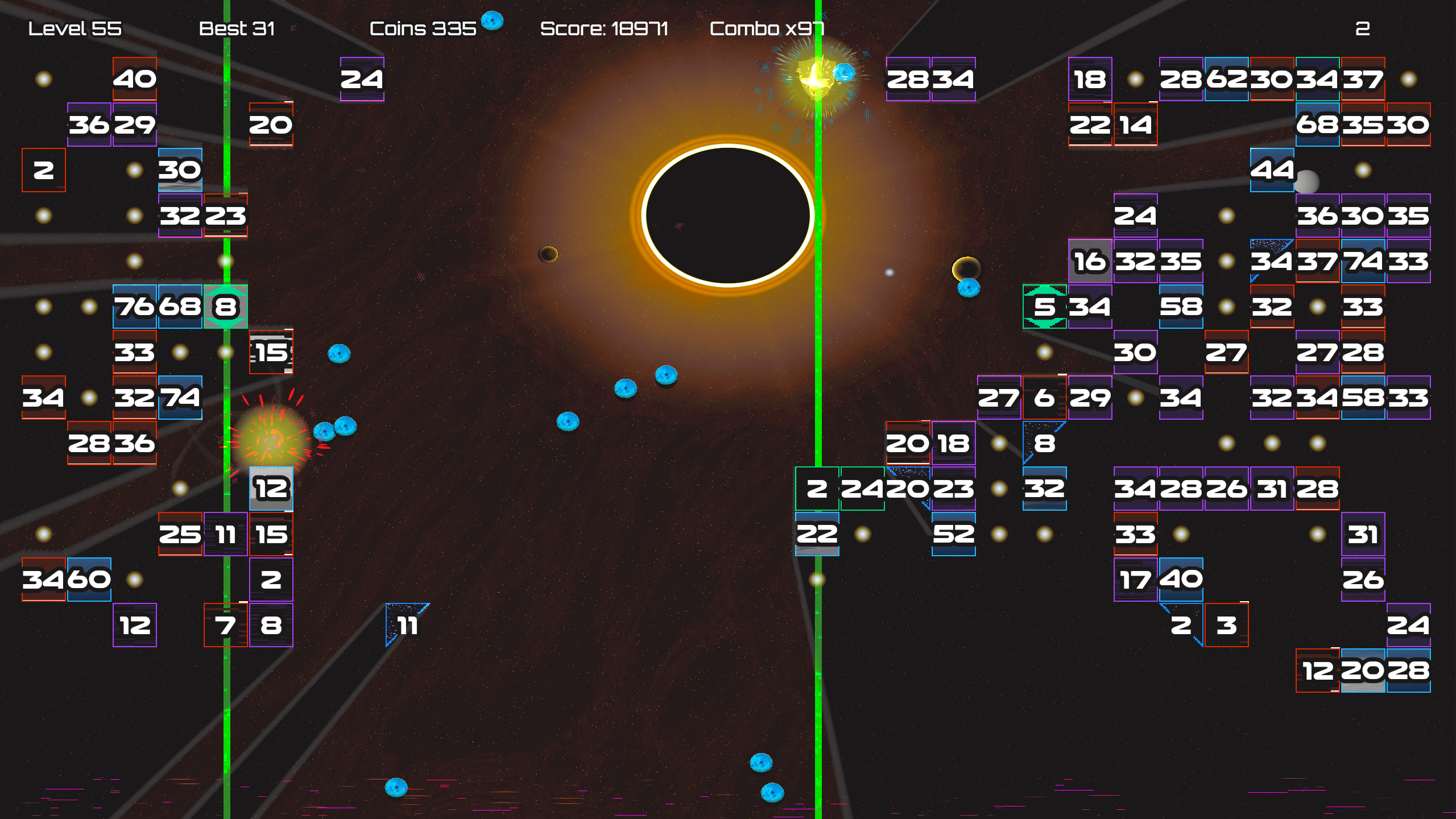 Singularity Break is an arcade rogue-lite about creating chaos. Fire a massive volley of balls and watch as they ricochet around the screen, demolishing an ever-growing field of blocks.